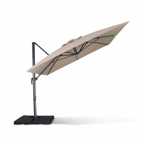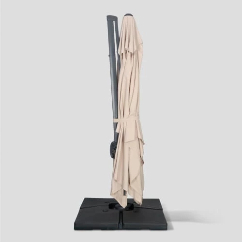 Attention, les dalles nécessaires pour lester le parasol ne sont pas fournies, vous retrouverez une sélection de dalles dans notre boutique (remplissable ou en résine).Vous pourrez également trouver des lests spéciaux en béton (de 40x40cm à 50x50cm), dans les grandes surfaces de bricolage.