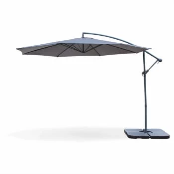 Attention, les dalles nécessaires pour lester le parasol ne sont pas fournies, vous retrouverez une sélection de dalles dans notre boutique (remplissable ou en résine).Vous pourrez trouver également des lests spéciaux en béton (de 40x40cm à 48x48cm), dans les grandes surfaces de bricolage.