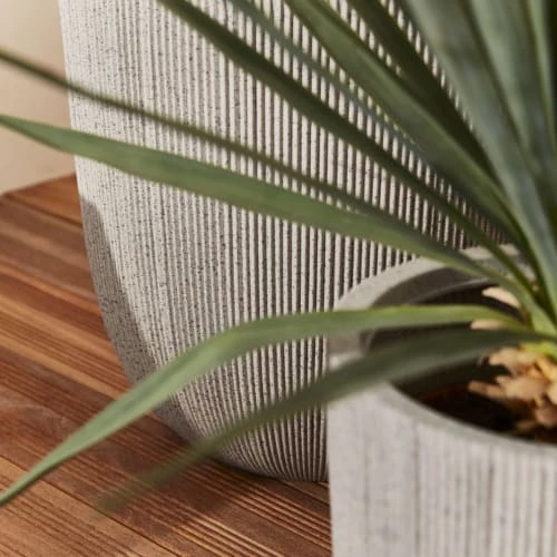À la fois pratique et esthétique, ces cache-pots embelliront vos plus belles plantes. On aime leur design imitation béton avec un léger relief qui leur donne une allure moderne. Ce lot comprend 3 vases de tailles différentes, vous pouvez les disposer l’un à côté de l’autre pour jouer avec les tailles, ou séparément. Ces vases peuvent être utilisés comme cache-pots ou bacs à fleurs. Ils sont dotés d’un trou de drainage pour l’irrigation (l’orifice peut être laissé ouvert ou fermé selon les besoins de la plante).