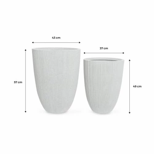 À la fois pratique et esthétique, ces cache-pots embelliront vos plus belles plantes. On aime leur design imitation béton avec un léger relief qui leur donne une allure moderne. Ce lot comprend 2 vases de tailles différentes, vous pouvez les disposer l’un à côté de l’autre pour jouer avec les tailles, ou séparément. Ces vases peuvent être utilisés comme cache-pots ou bacs à fleurs. Ils sont dotés d’un trou de drainage pour l’irrigation (l’orifice peut être laissé ouvert ou fermé selon les besoins de la plante).