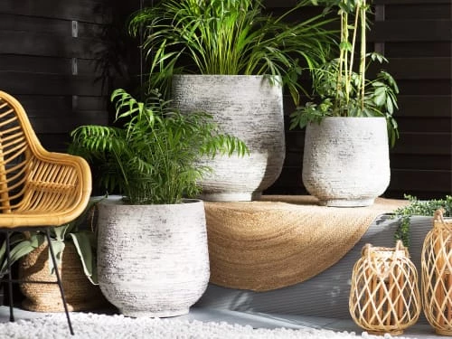 Beliani Pots, Cache-pots Et Jardinières D’extérieur Cache-pot D’extérieur En Pierre Gris H50