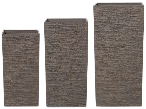 Beliani Pots, Cache-pots Et Jardinières D’extérieur Cache-pot D’extérieur En Pierre Marron H45 50 56