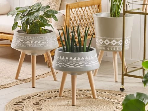 Beliani Pots, Cache-pots Et Jardinières D’extérieur Lot De 3 Cache-pots Ronds D34