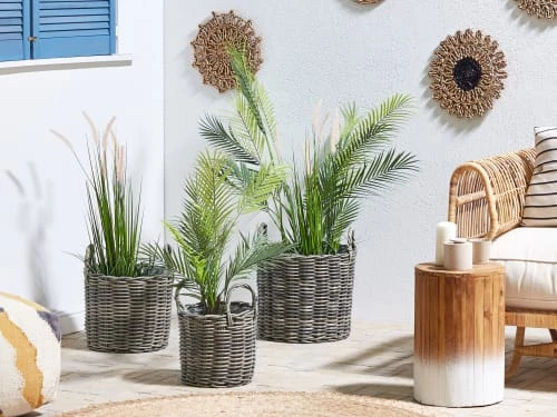 Beliani Pots, Cache-pots Et Jardinières D’extérieur Cache-pot D’extérieur En Pierre Gris H35