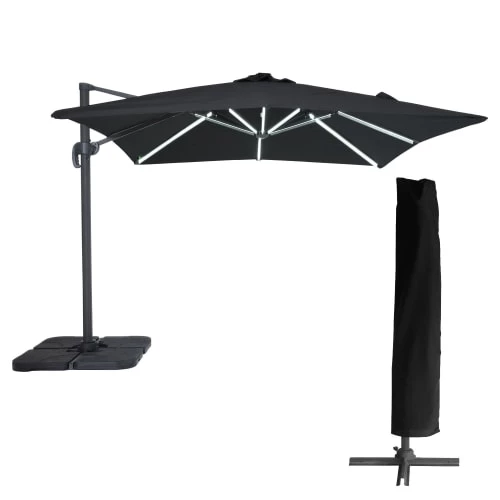 Maisons Du Monde Parasols Parasol Inclinable En Aluminium Avec Pied Toile Gris Anthracite 3×3