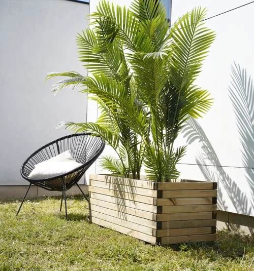 Son design simple par superposition de lamelle facilitera son intégration dans votre jardin, votre balcon ou votre terrasse. Cette jardinière est constituée de lamelles de pin européen assemblés par des clous.