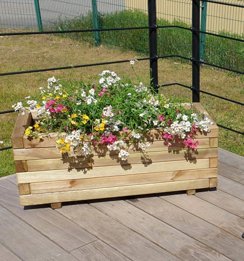 Son bois est traité autoclave classe 3, afin de vous garantir une très haute résistance à l’humidité et aux alternances répétitives d’humidité et de sécheresse. Il est labellisé FSC garantissant une gestion durable de la forêt d’où provient ce bois.