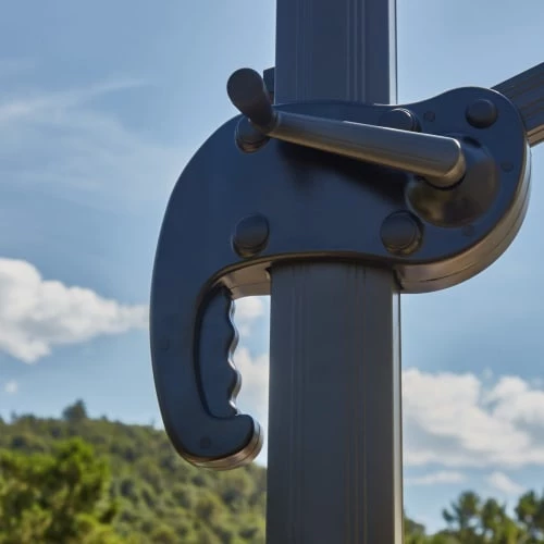 Il peut être tourné à 360 degrés et est inclinable en hauteur, ce qui vous permet de choisir l’orientation la plus pratique. Il dispose d’une manivelle qui vous permet d’ouvrir et de fermer le parasol très simplement.