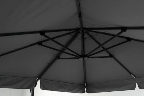 Ce parasol possède une structure robuste avec un total de 8 tiges et un design élégant qui le rend idéal pour un aménagement de jardin ou de terrasse que vous pourrez garder toute l’année.