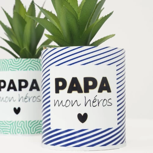 – 2 modèles assortis : Bleu et blanc « Papa mon héros » et Vert et blanc « Papa mon héros »