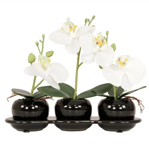 Cet ensemble de 3 orchidées artificielles sur son plateau noir possède des fleurs très réalistes notamment grâce à leur « toucher naturel ».