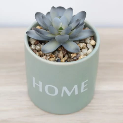 – 2 modèles assortis avec le message HOME écrit en blanc : 1pot vert + 1pot bleu