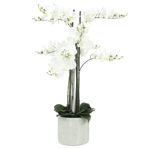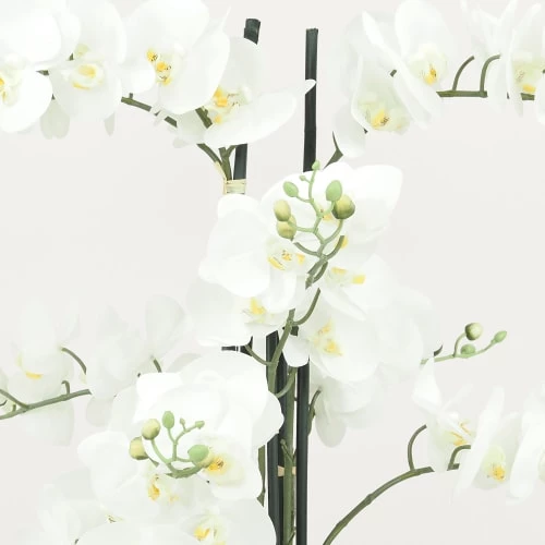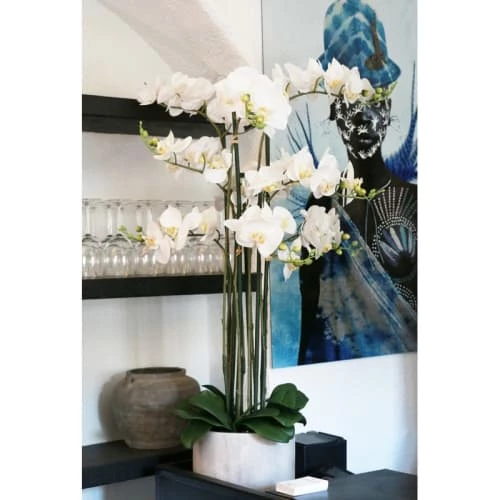 Avec ses 9 branches, ses fleurs au « toucher naturel » et son pot ciment, cette orchidée géante majestueuse d’1m05 est ce qu’il vous faut pour créer une décoration exquise !