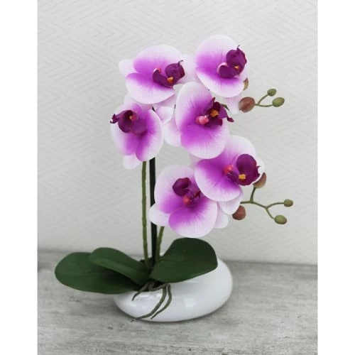 Cette orchidée artificielle de 35 cm possède 2 hampes florales et des fleurs très réalistes notamment grâce à leur « toucher naturel ».