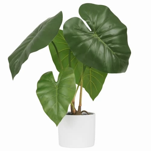 Ses grandes feuilles nervurées en forme de coeur et son pot en céramique blanc rendront votre décoration tendance.
