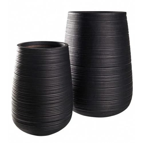 Nobles et grandioses, ces 2 pots de jardin rainurés noirs KAMPALAinsuffleront une vague d’élégance sur votre terrasse. Avec leur aspect sillonné noir mat votre décoration extérieure sera revêtue d’un look travaillé et raffiné. Cet ensemble de vases vous permettra de jouer subtilement avec les formes et les matières. Pour une décoration encore plus raffinée penchez pour un tapis d’extérieur.