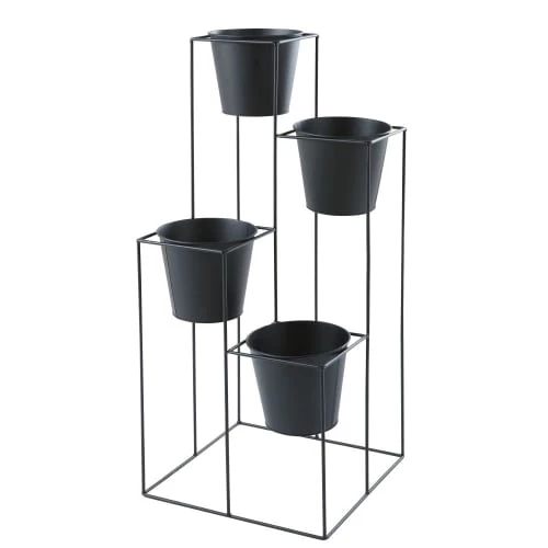 Maisons Du Monde Pots, Cache-pots Et Jardinières D’extérieur 2 Pots De Jardin Rainurés Noirs H64