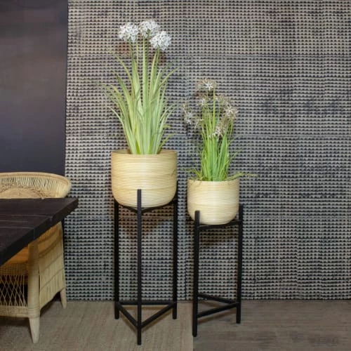 Maisons Du Monde Pots, Cache-pots Et Jardinières D’extérieur 2 Pots De Jardin Rainurés Noirs H64