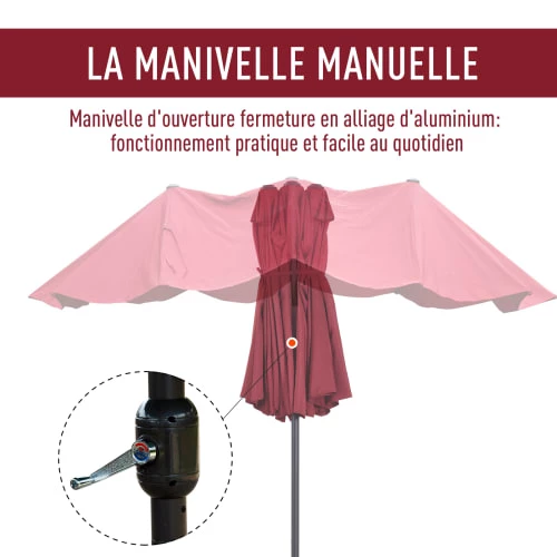 – Grand parasol idéal pour ombrager une grande zone dans votre jardin, patio, terrasse, piscine, etc