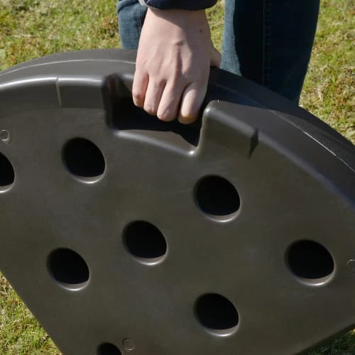 – Chaque élément est à remplir d’eau (charge max. 17 Kg) ou de sable (charge max. 25 Kg) avec fermeture bouchon