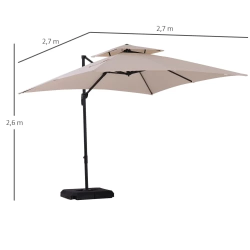 – Parasol déporté carré grande taille dim. 2,7L x 2,7l x 2,6H m