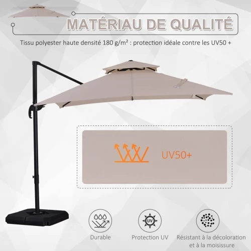 – Idéal pour profiter d’une grande zone ombragée sur votre terrasse, dans votre jardin ou au bord de votre piscine !