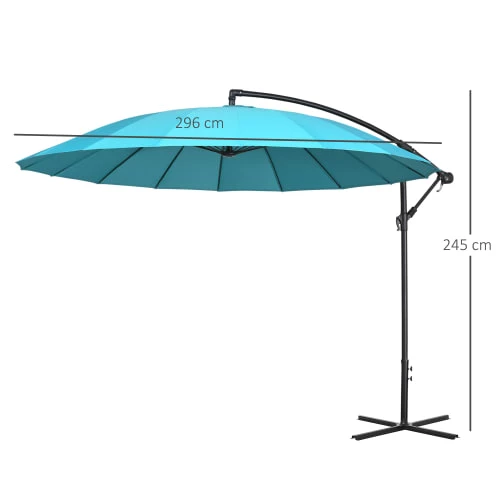 – Parasol déporté rond grande taille diamètre 2,96 m et hauteur 2,45 m
