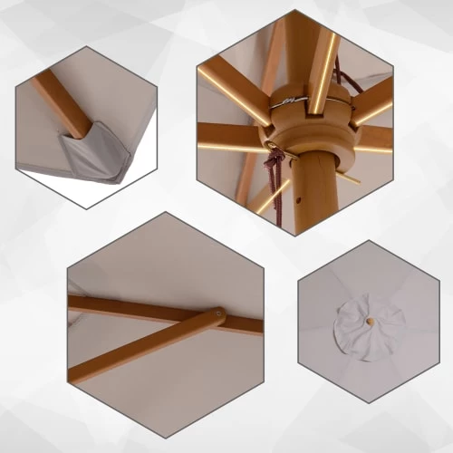 – Grand parasol droit hexagonal idéal pour une utilisation dans votre jardin, sur votre terrasse, balcon, etc.
