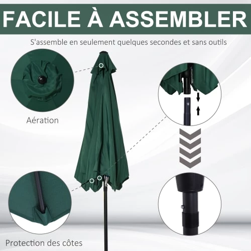 – Grand parasol idéal pour ombrager une grande zone dans votre jardin, patio, terrasse, piscine, etc…