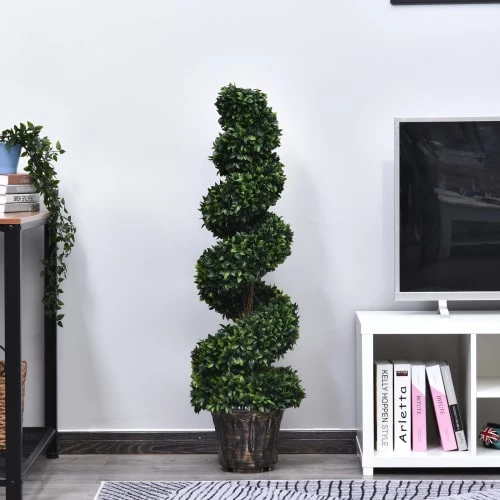 – Buis artificiel topiaire en forme de spirale idéal pour ajouter une touche d’originalité et élégance à l’espace intérieur ou extérieur de votre choix