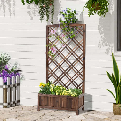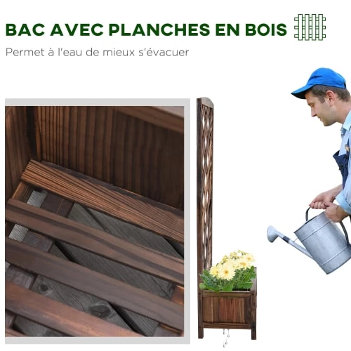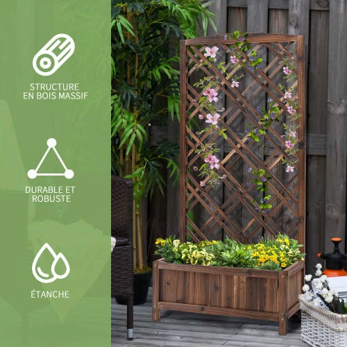 – Jardinière rectangulaire sur pieds avec treillis idéale pour planter et mettre en valeur vos jolies fleurs, plantes grimpantes ou autre