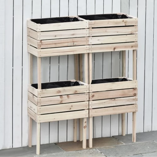 – Lot de 4 jardinières rectangulaires potagers sur pieds double idéal pour jardiner à domicile sans avoir à se baisser