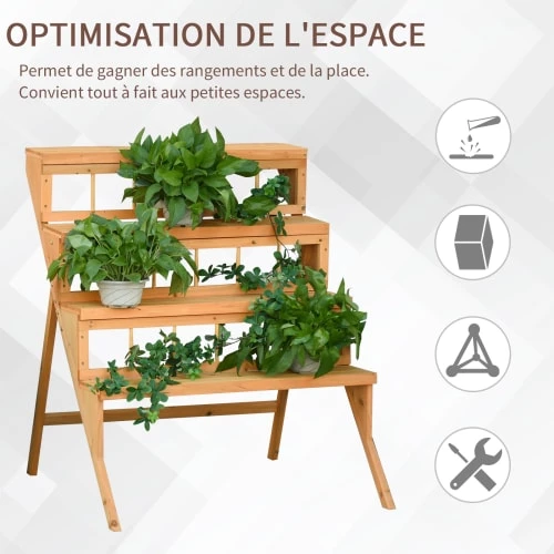 – Étagère à fleurs échelle, porte plante escalier bois 4 étagères idéal pour créer une décoration attrayante en présentant des fleurs, bonsaïs, etc…