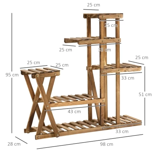 – Étagère à fleurs escalier, porte plante bois multi-niveaux 6 tablettes idéal pour créer une décoration attrayante en présentant des fleurs, bonsaïs, etc.