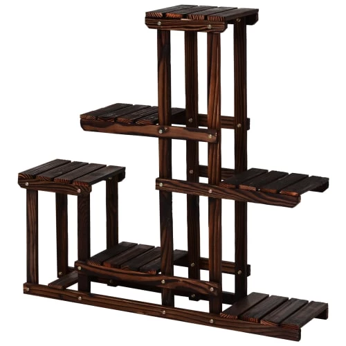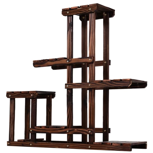 – Étagère à fleurs escalier, porte plante bois multi-niveaux 6 tablettes idéal pour créer une décoration attrayante en présentant des fleurs, bonsaïs, etc…