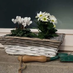 Aubry Gaspard Pots, Cache-pots Et Jardinières D’extérieur Jardinière Osier Blanc Et Gris 38 Cm