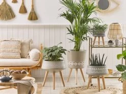Beliani Pots, Cache-pots Et Jardinières D’extérieur Cache-pot D’extérieur En Rotin Blanc H38 43 50