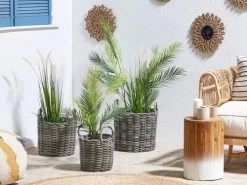 Beliani Pots, Cache-pots Et Jardinières D’extérieur Pots Et Vases En Rotin Beige H28 37 47