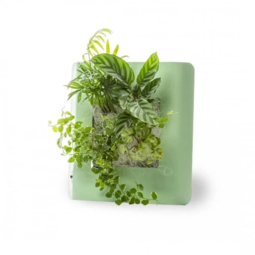 Les plantes prennent racine dans une poche contenant un substrat naturel spécifique à chaque composition, permettant aux plantes de se développer au fil des saisons. Une mèche en coton trempe dans un réservoir situé à l’arrière du cadre ce qui permet aux plantes d’absorber l’eau en fonction de leurs besoins.